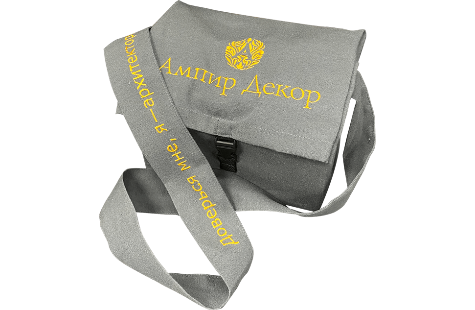 Выбирайте вариант текста для вышивки надписи и цвет ниток или закажите сумку только с логотипом без надписи на ручке.